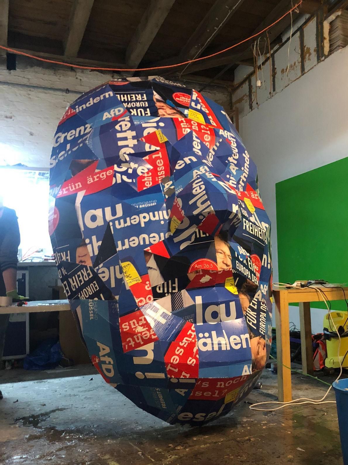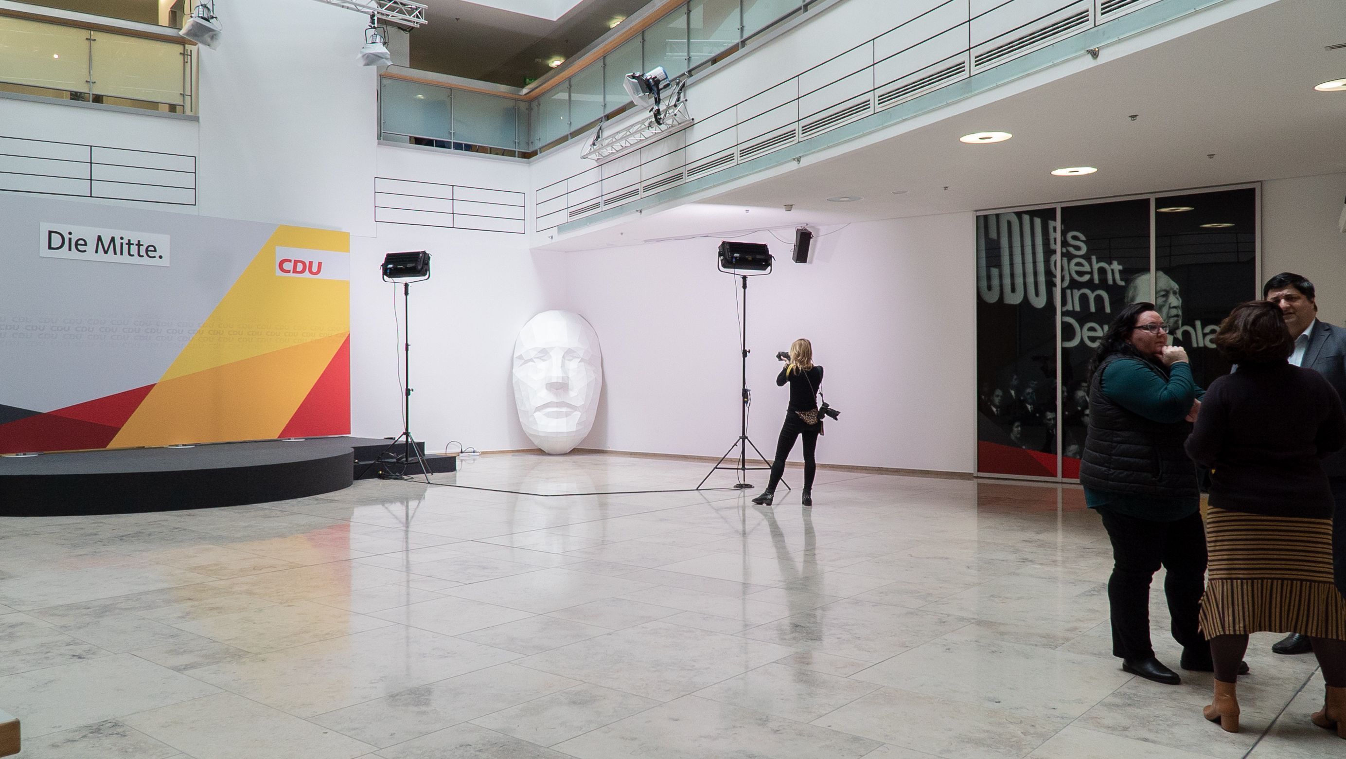 Einen Tag lang konnten Politiker, Besucher und Kunstinteressierte diese Skulptur besichtigen, perfekt inszeniert durch die Haustechniker der CDU Hauptzentrale.